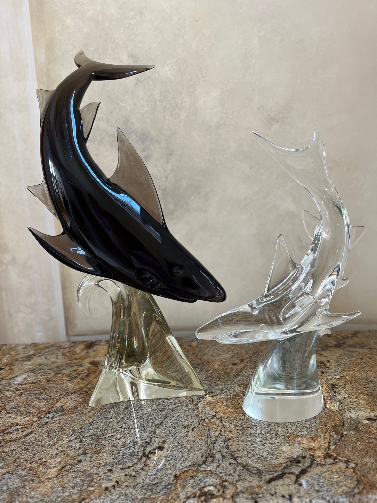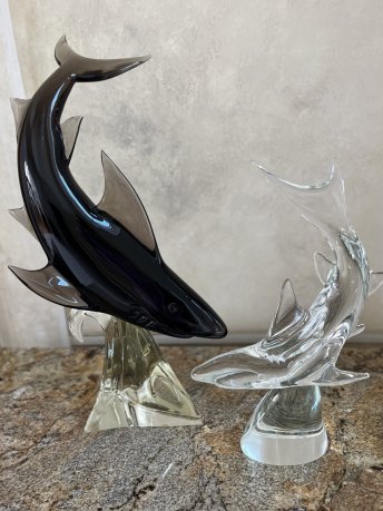 Venetian Glass SHARK Sculptures on signed base