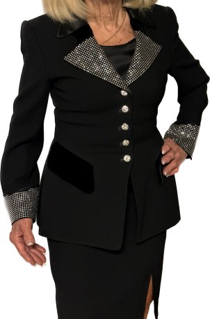 Austrian crystal studded lapel and cuffs