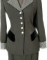 Semi fitted silhouette…… Jacket back detailed w/ three pleats & rhinestone button detail