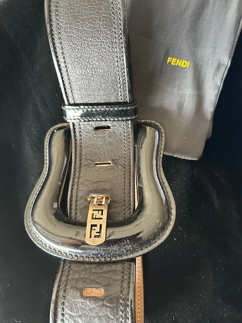 FENDI Vintage Chunky Wide Belt W/ Signature Patent Bold Buckle