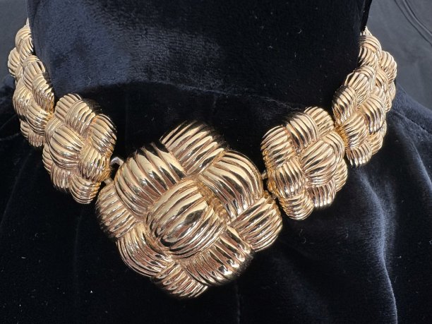 Vintage FENDI Basket Weave Gold Plated Collar Necklace